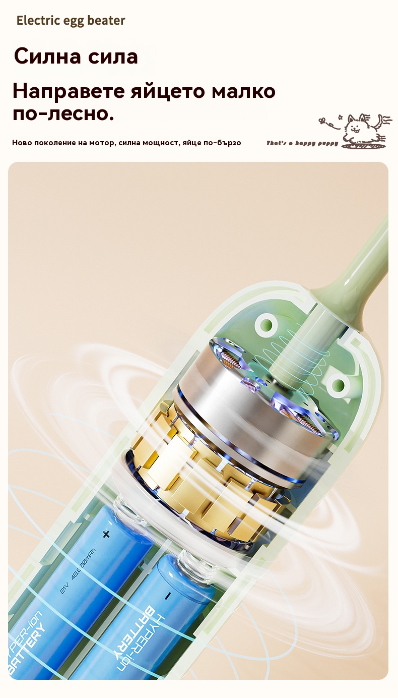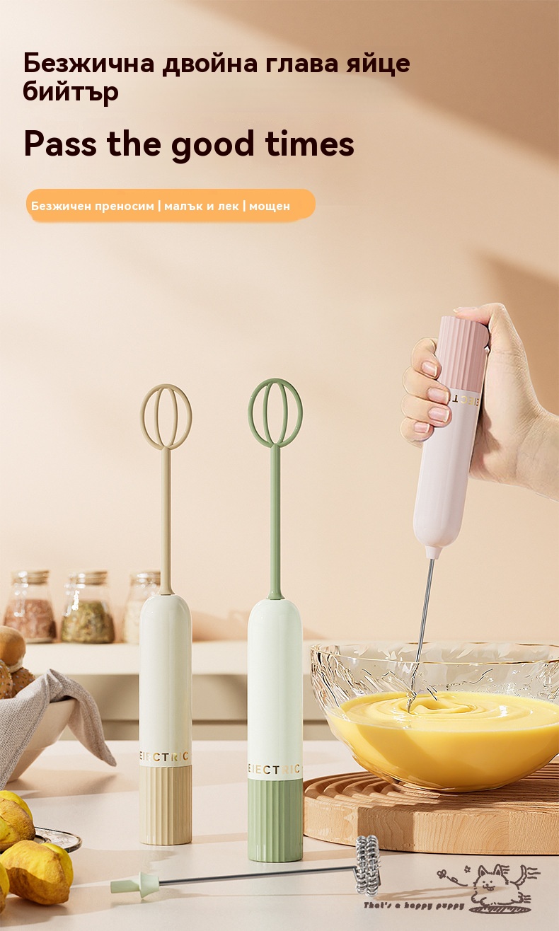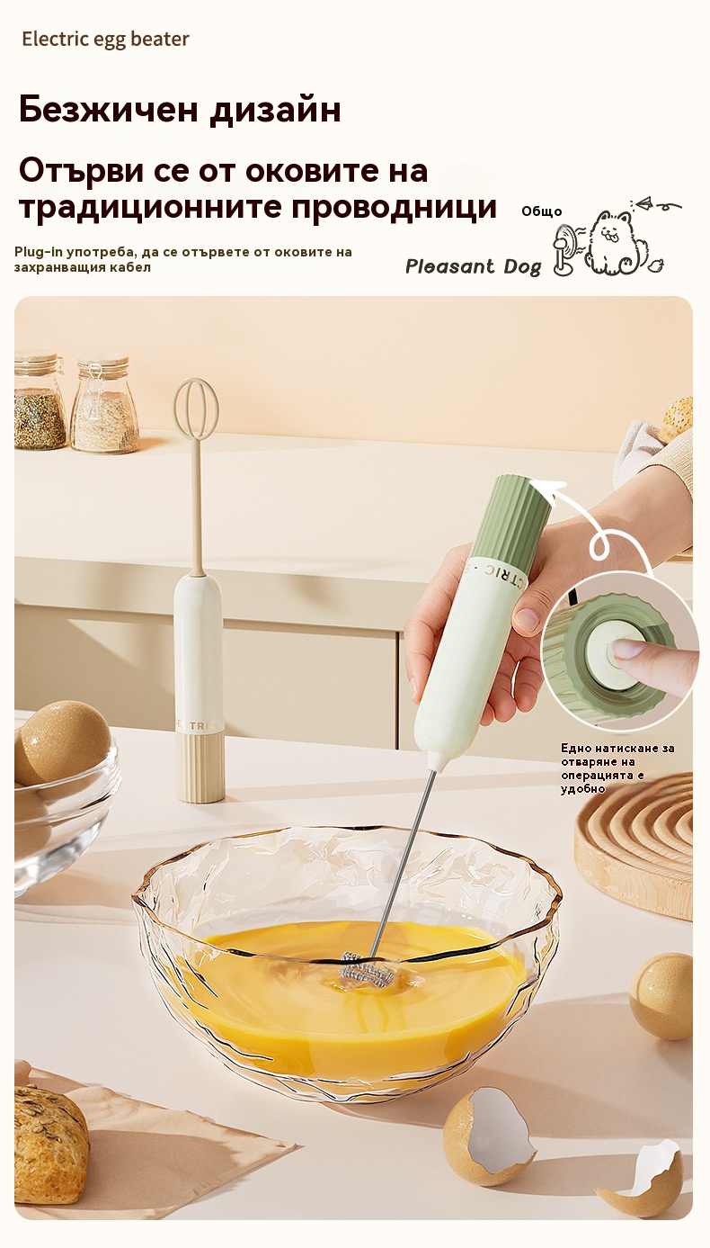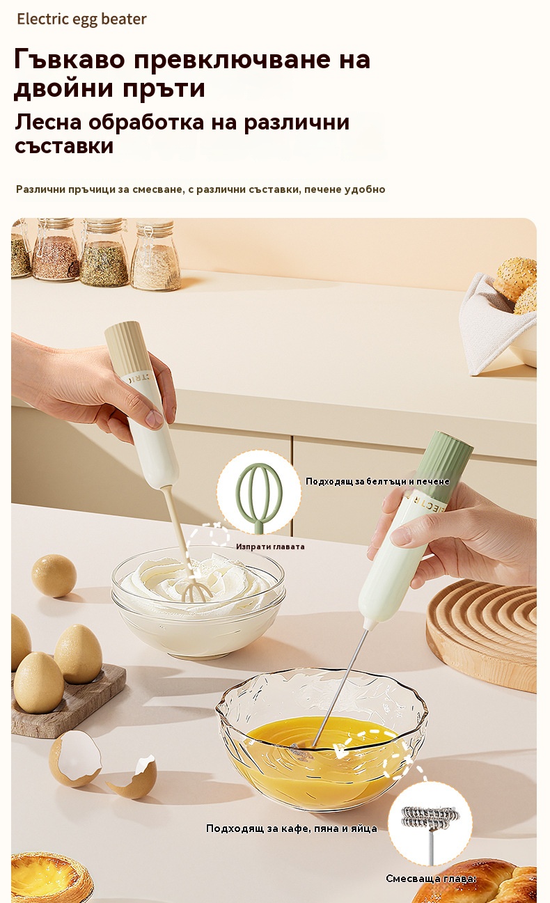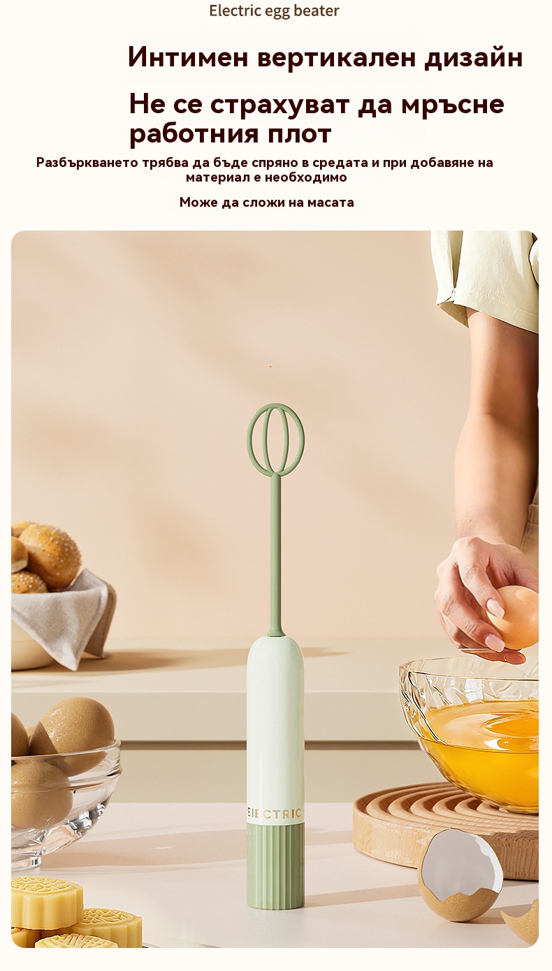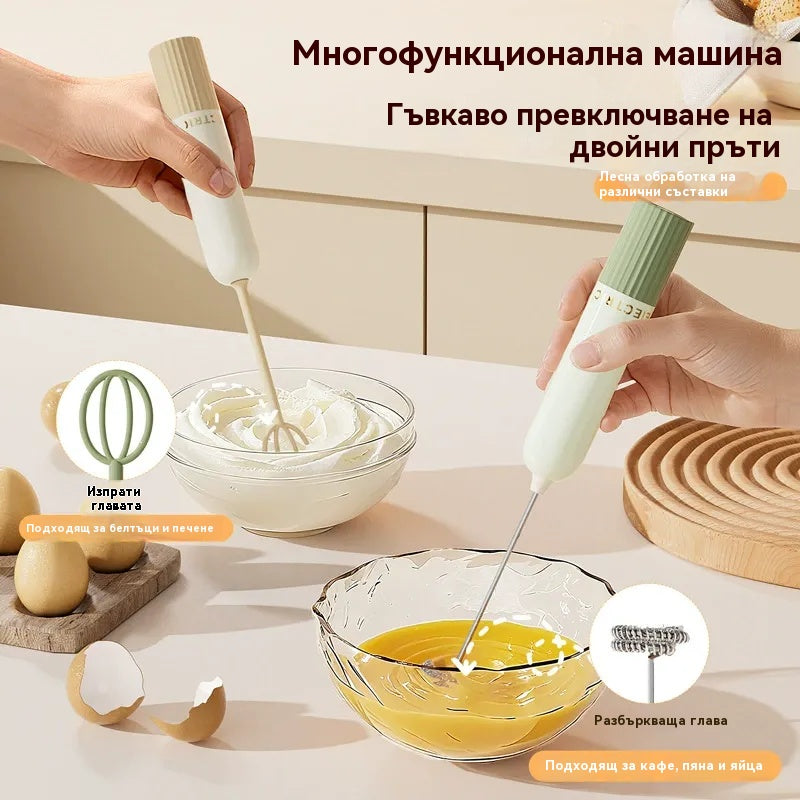 🥚 Безжичен мини ръчен блендер – Разбива яйца и разпенва мляко за секунди