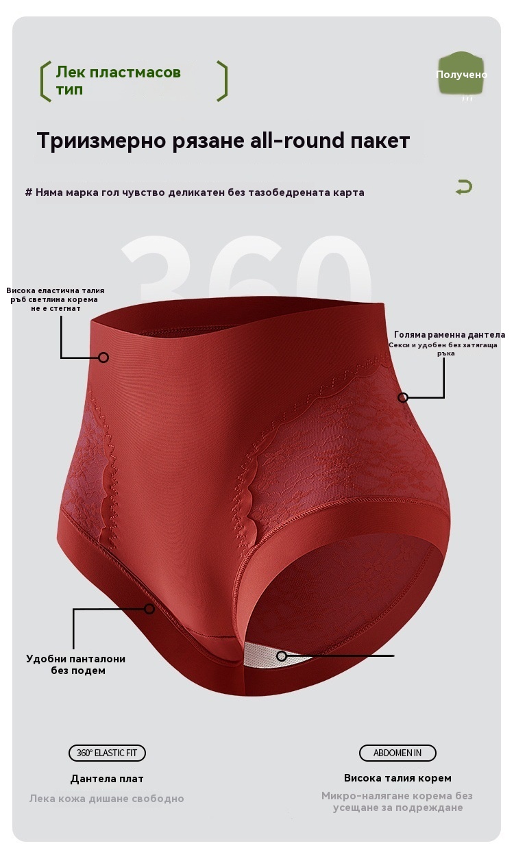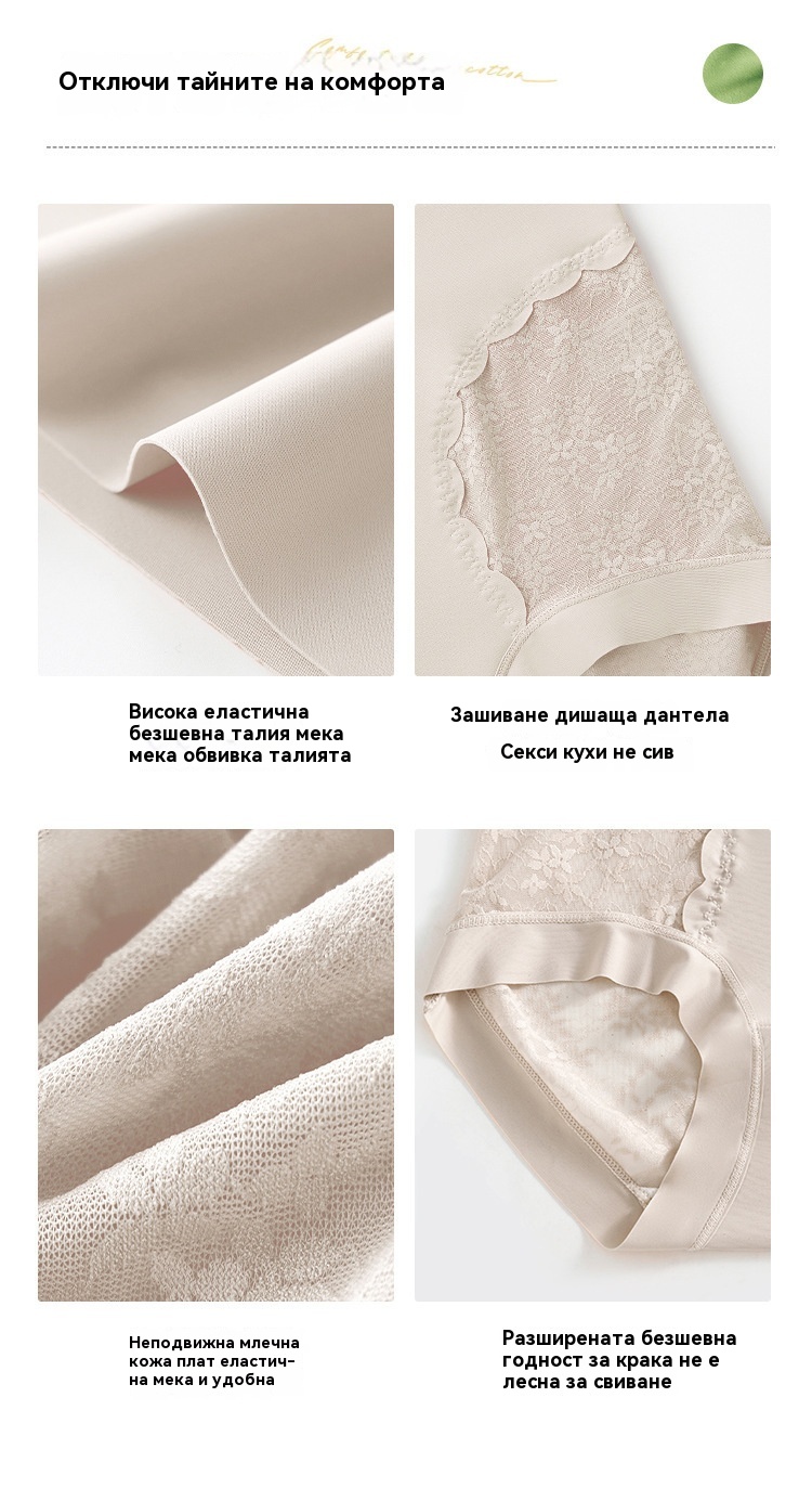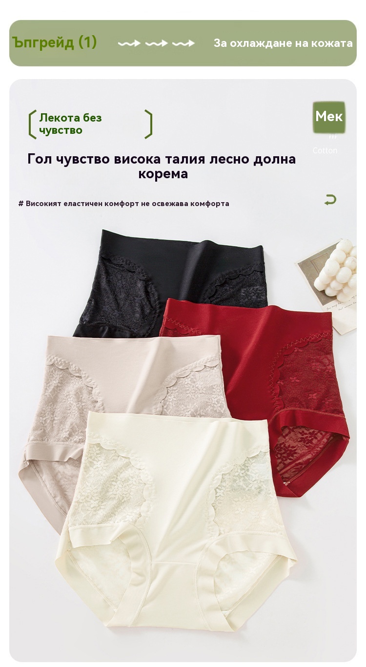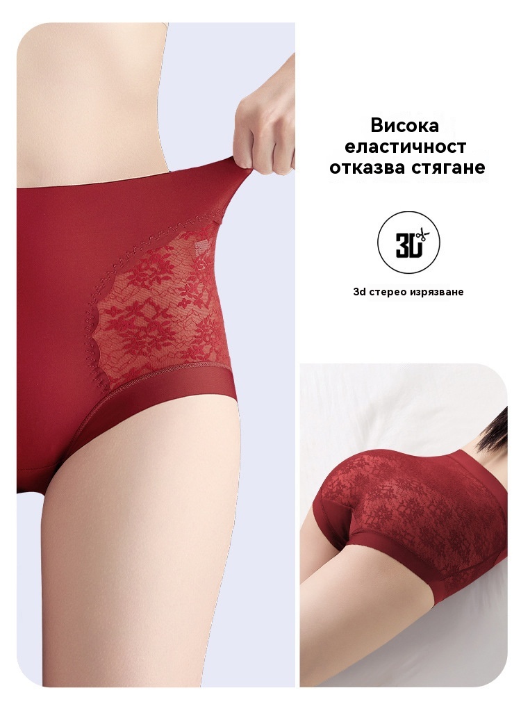 Дамски безшевни дантелени бикини за коремче, оформящи и повдигащи дупето, с висока еластичност