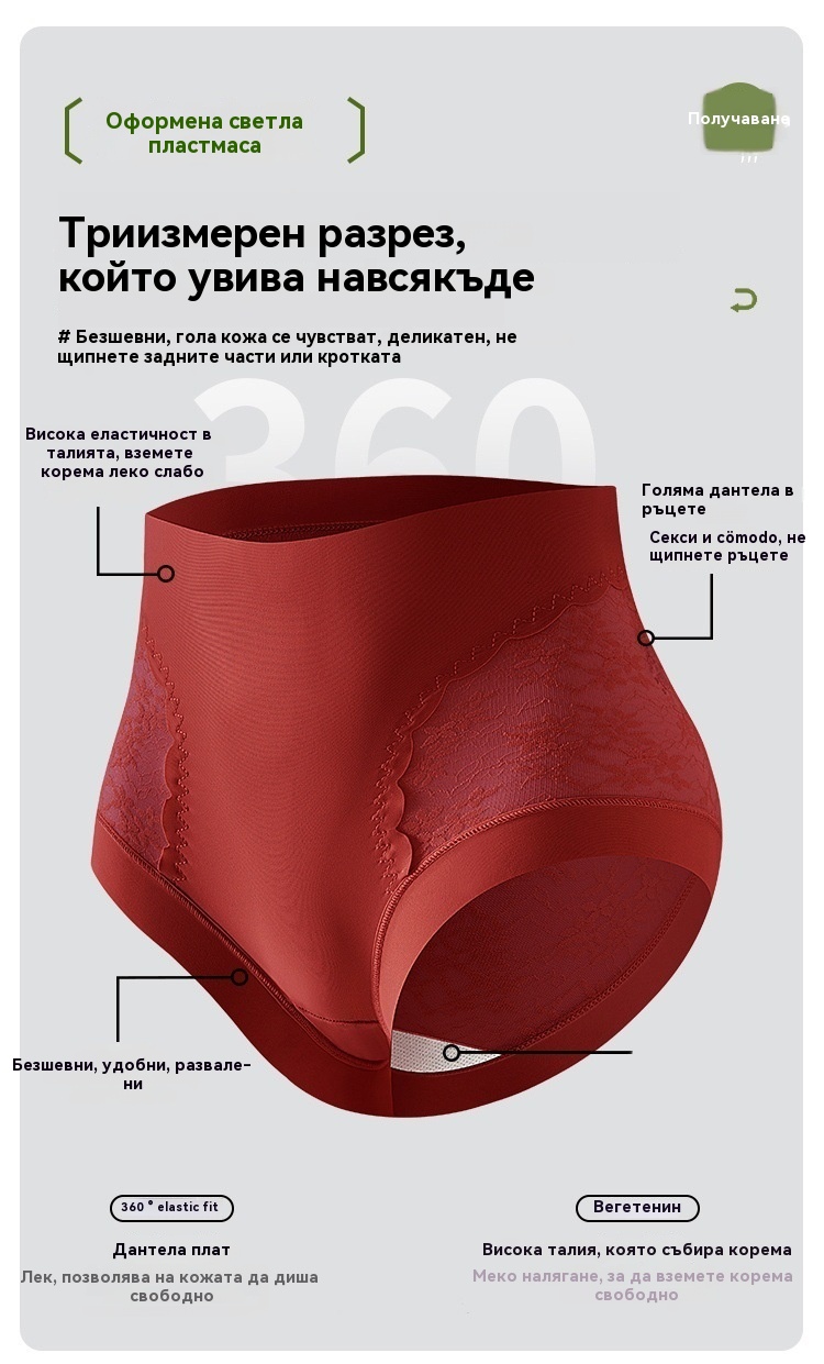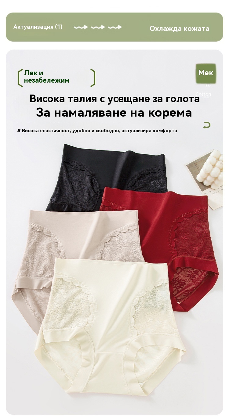 🩲【Купете 2, вземете 3 безплатно】Дамски безшевни дантелени бикини за коремче, оформящи и повдигащи дупето, с висока еластичност