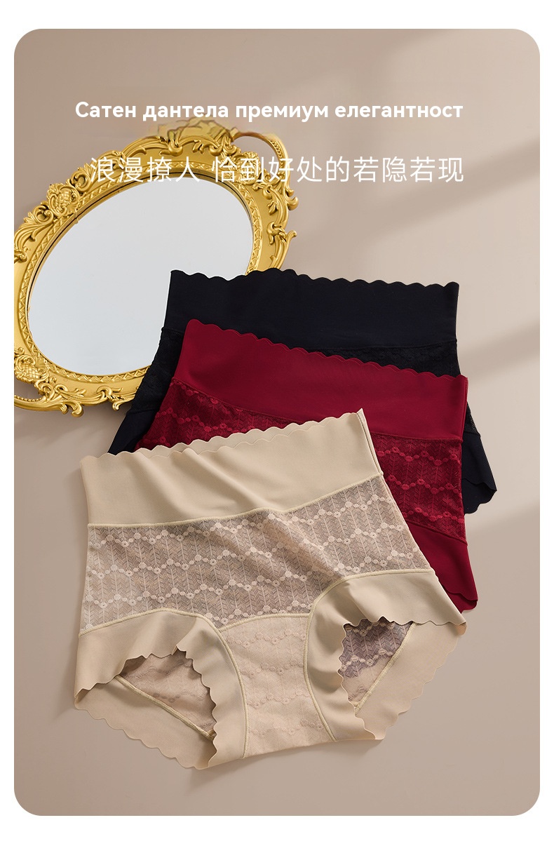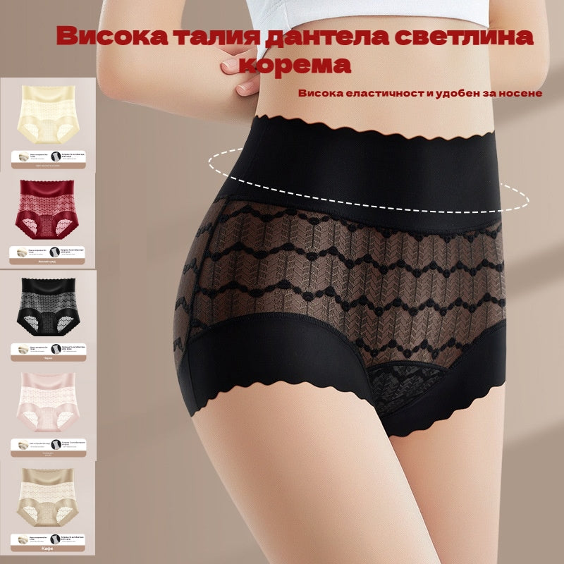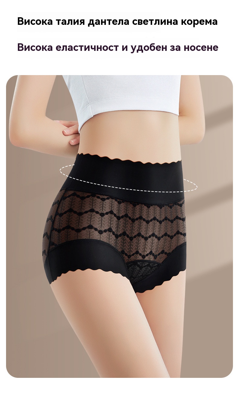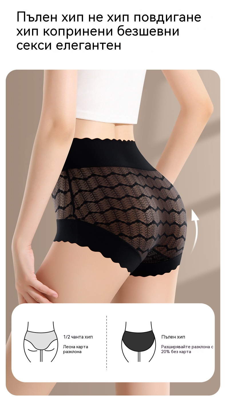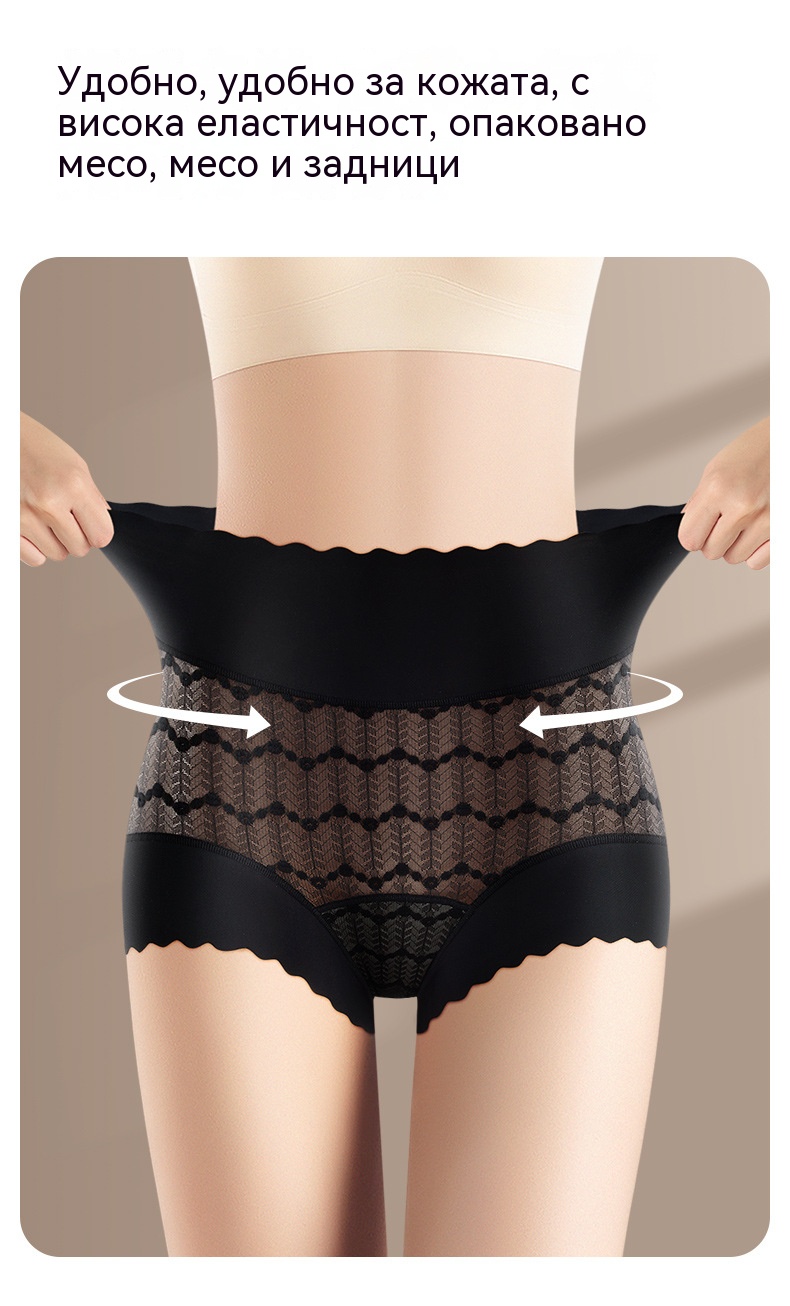 🩲【Купете 2, вземете 3 безплатно】Дамски безшевни дантелени бикини за коремче, оформящи и повдигащи дупето, с висока еластичност