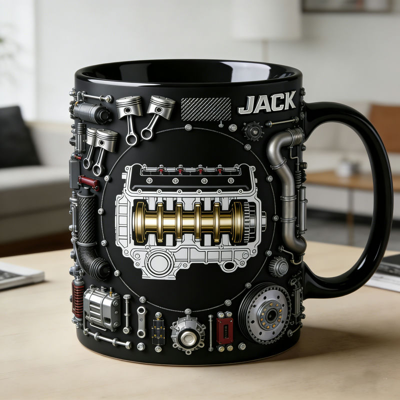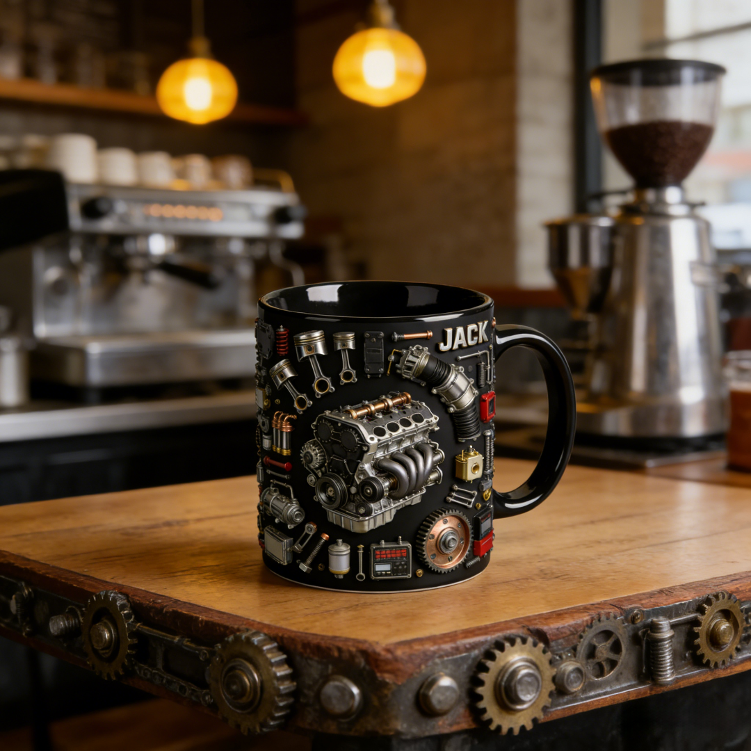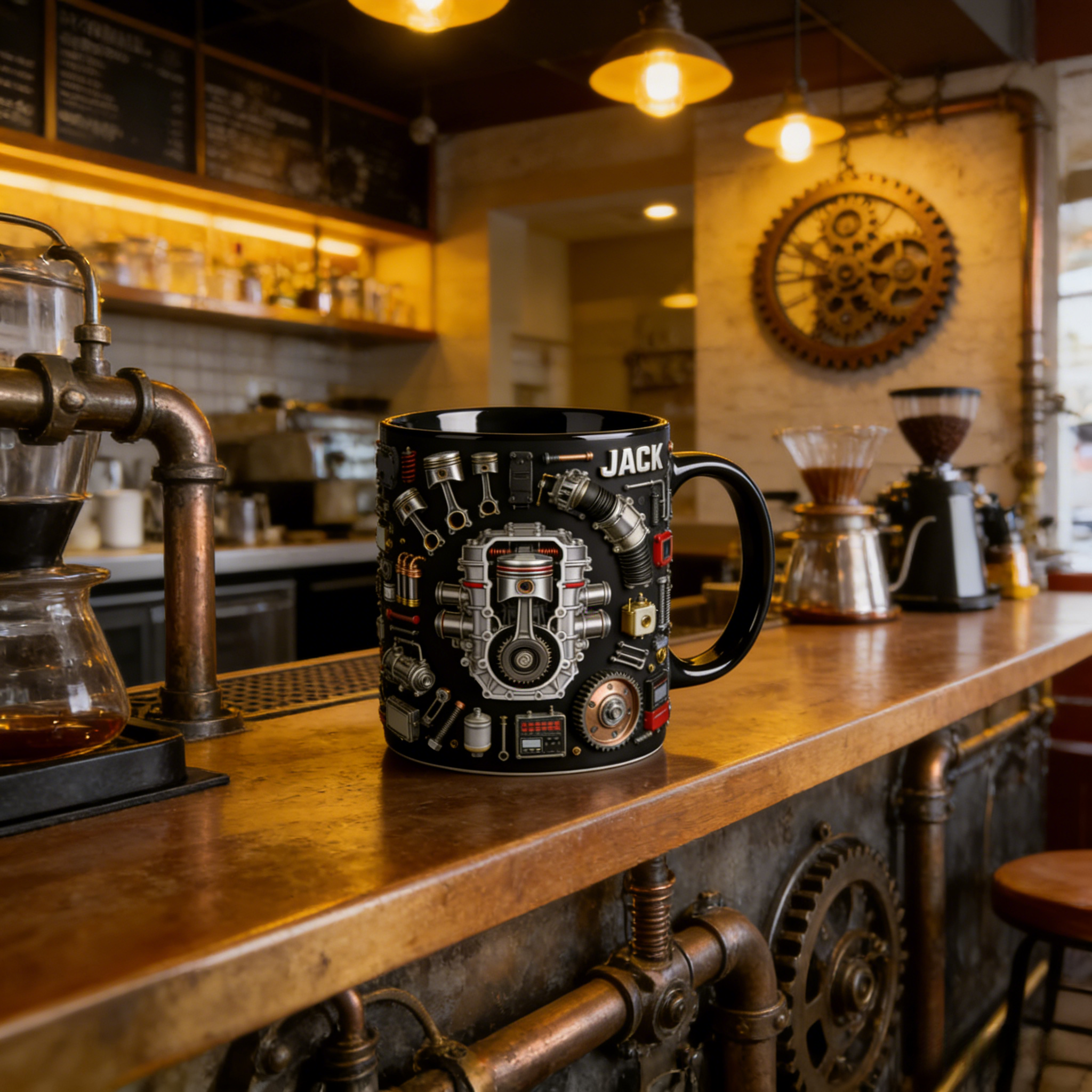 ☕Чаша с дизайн на двигател - перфектният подарък за всеки, който обича креативни дизайни на чаши.