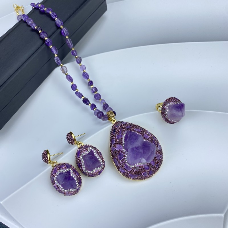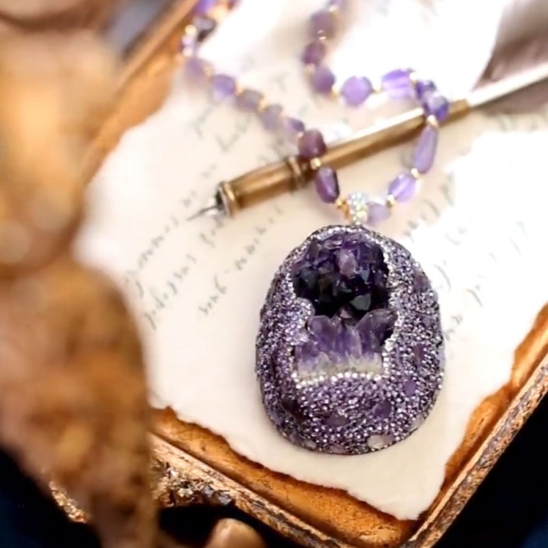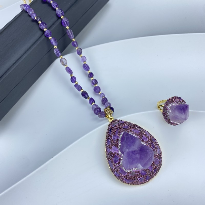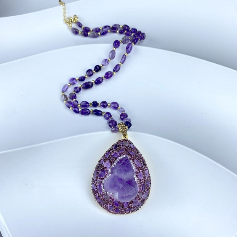 ✨Луксозно колие с естествен необработен аметист