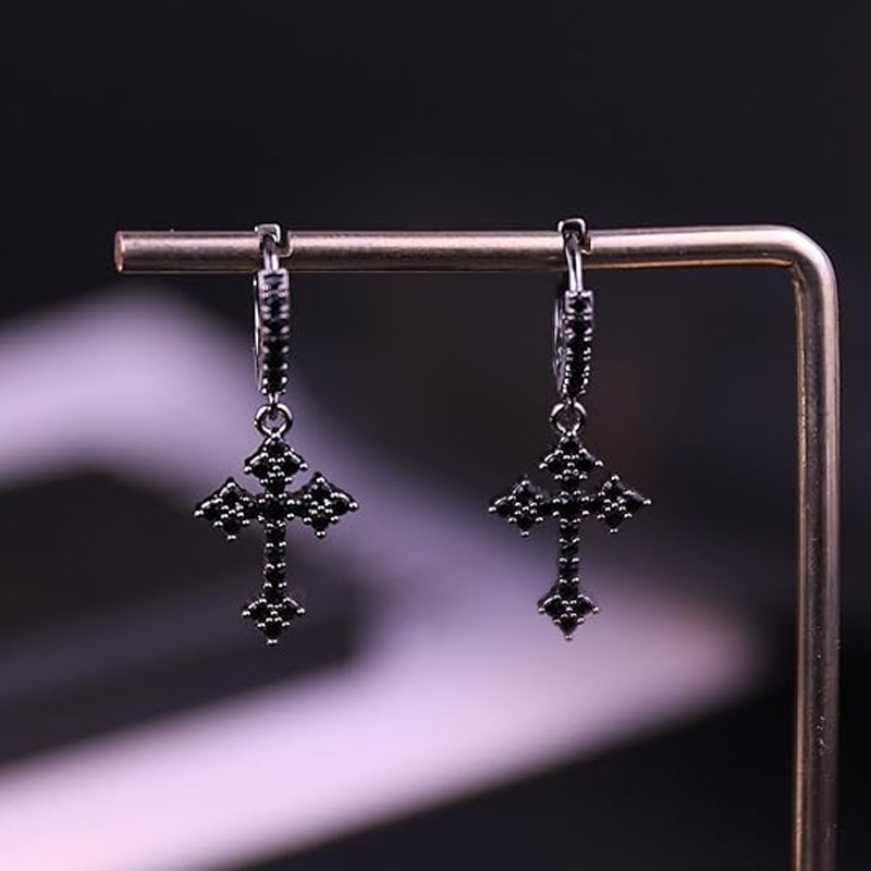 ✨ Обеци с готически диамант и кръст💎 Блестяща елегантност ✝️ Модерен готически дизайн, изпълнен с индивидуалност