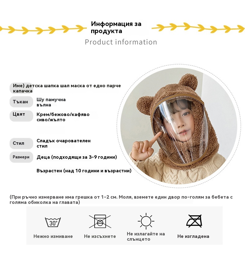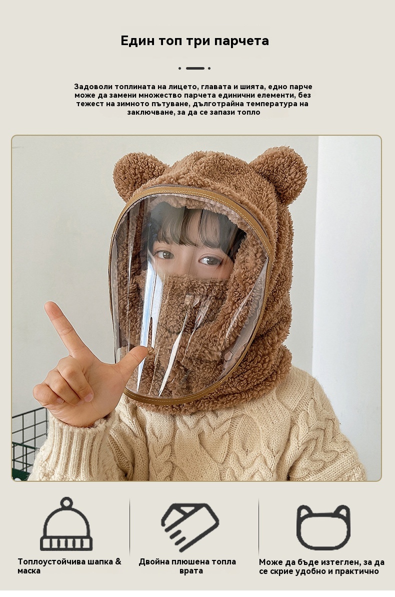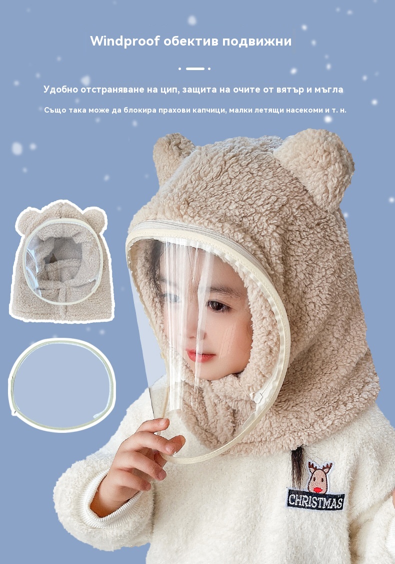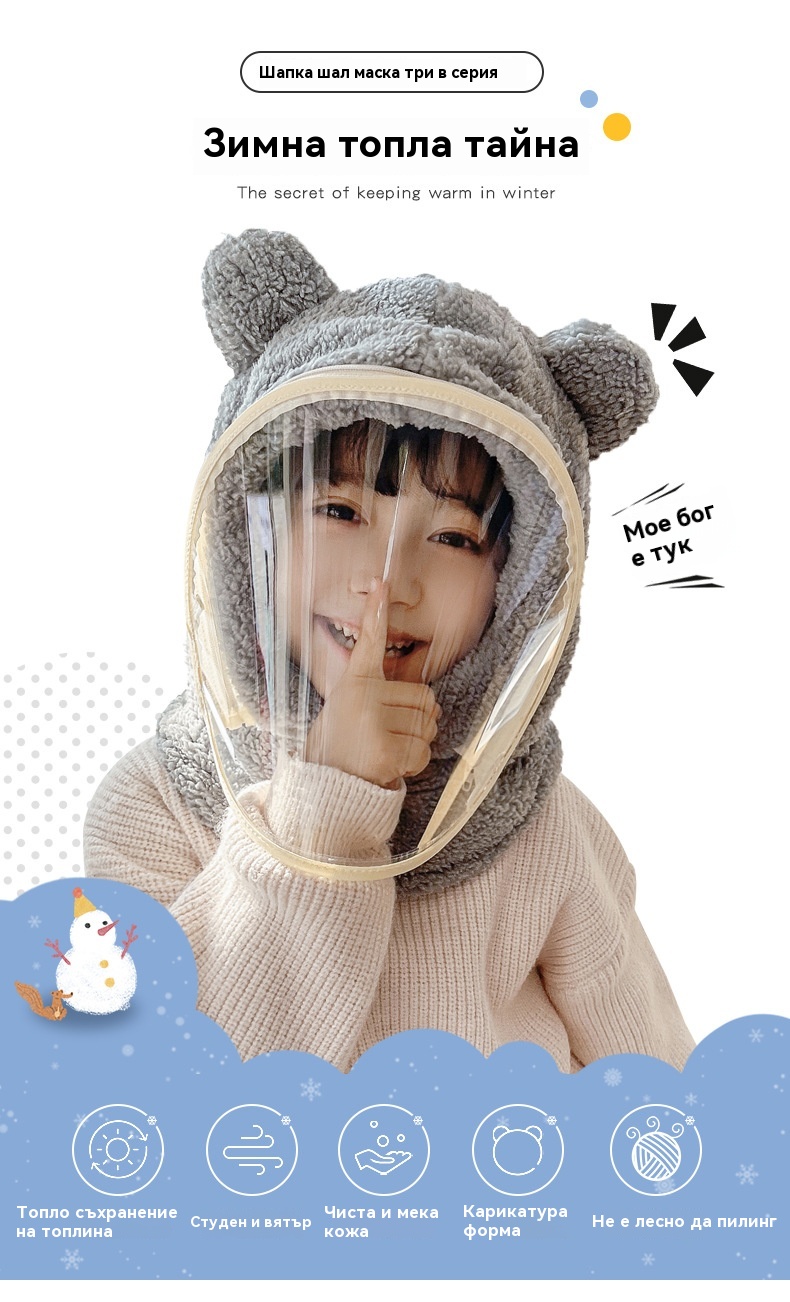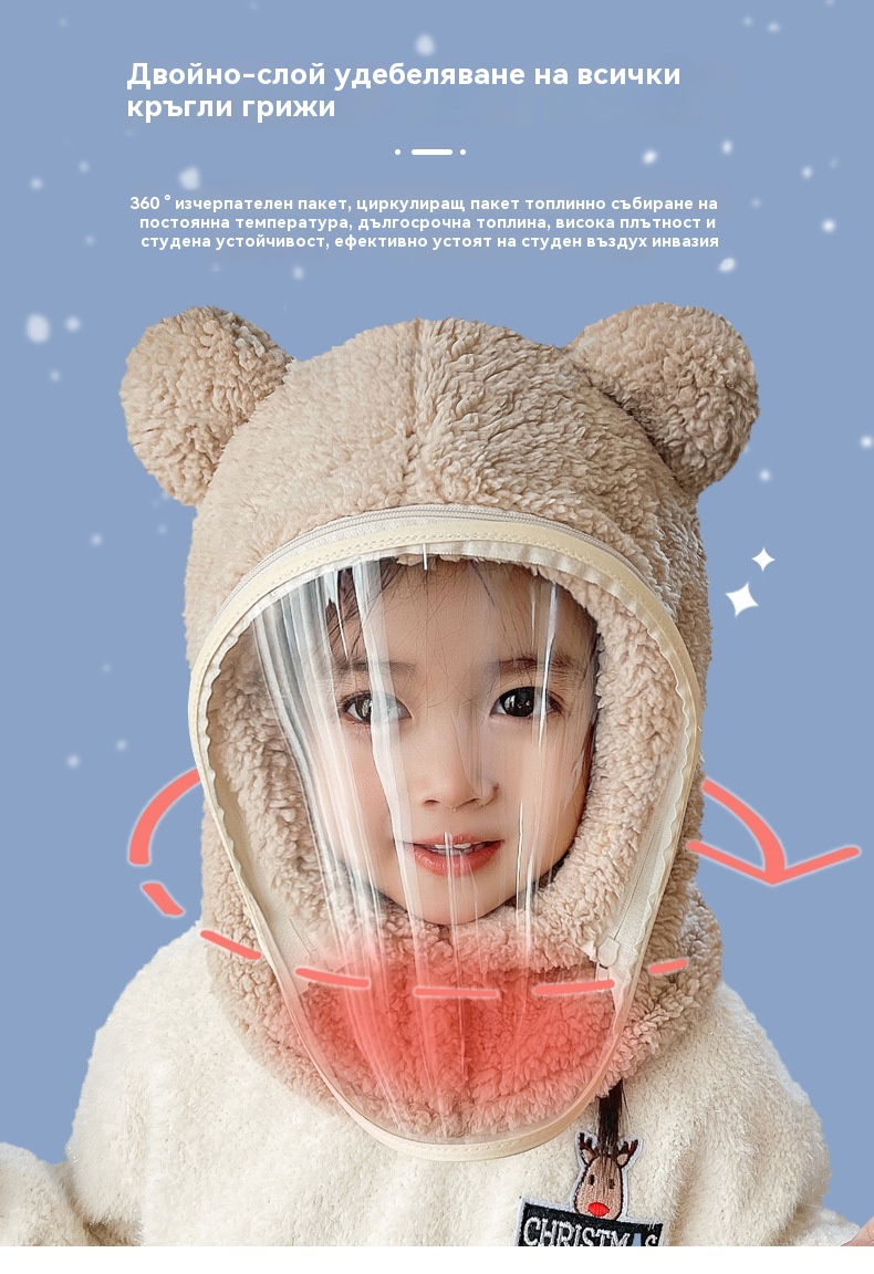 ❄️Зимна необходимост: Еднокомпонентна ветроустойчива маска за лице за деца✅ Допълнително удебелена с памук✅ Прахоустойчива и ветроустойчива