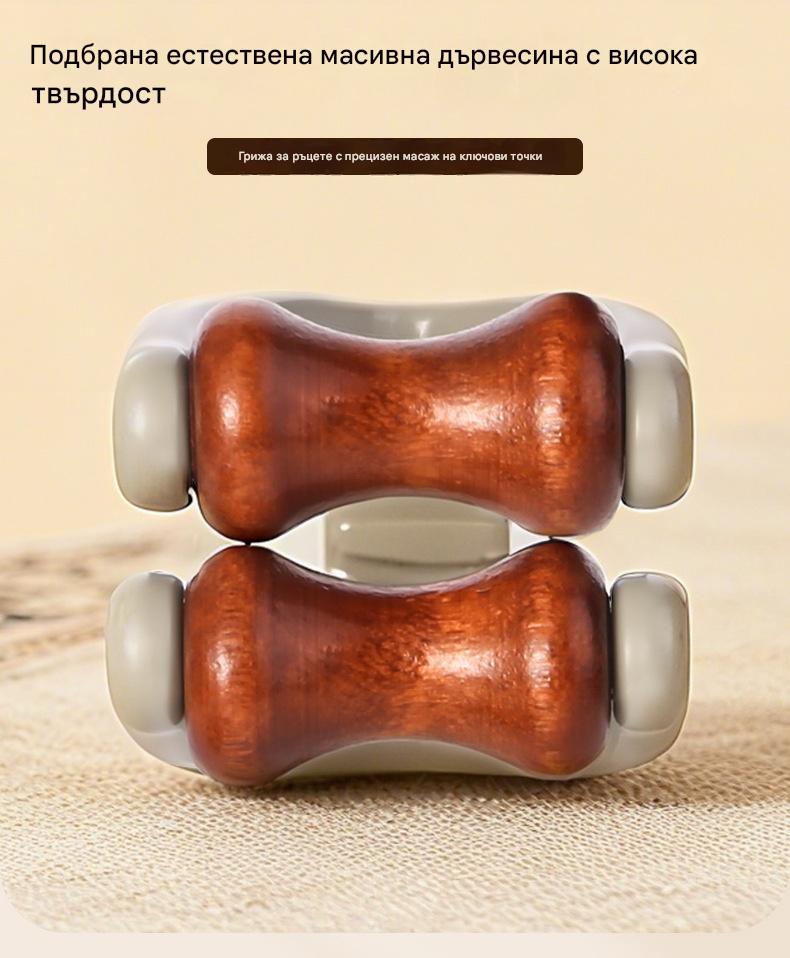 🌿 Масажор за пръсти от масивна дървесина: Ролките от естествено дърво помагат за отблокиране на ставните меридиани и облекчаване на умората в ръцете. 🌿