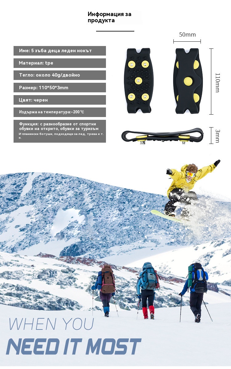 👴🚶🏔️❄️Купете 2, вземете 2 безплатно🔥Невидими 5-зъбни противоплъзгащи котки, подходящи за снежен туризъм, алпинизъм, скално катерене и зимни ледени повърхности.