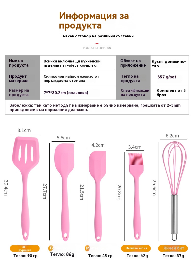 💥🛒【Голяма фабрична разпродажба】Комплект от пет незалепващи кухненски инструменти за печене