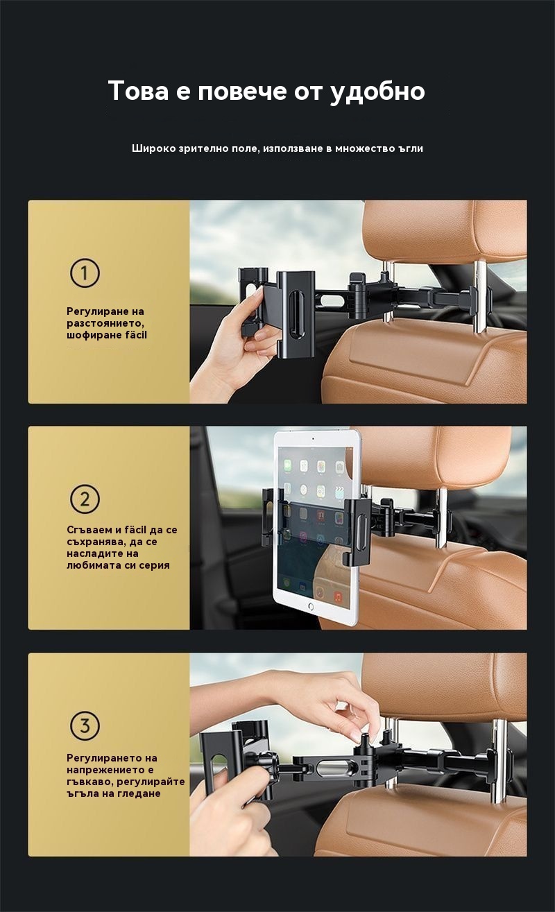 📱 Държач за телефон и таблет за облегалка за кола – регулируем, въртящ се и лесен за употреба 🚗