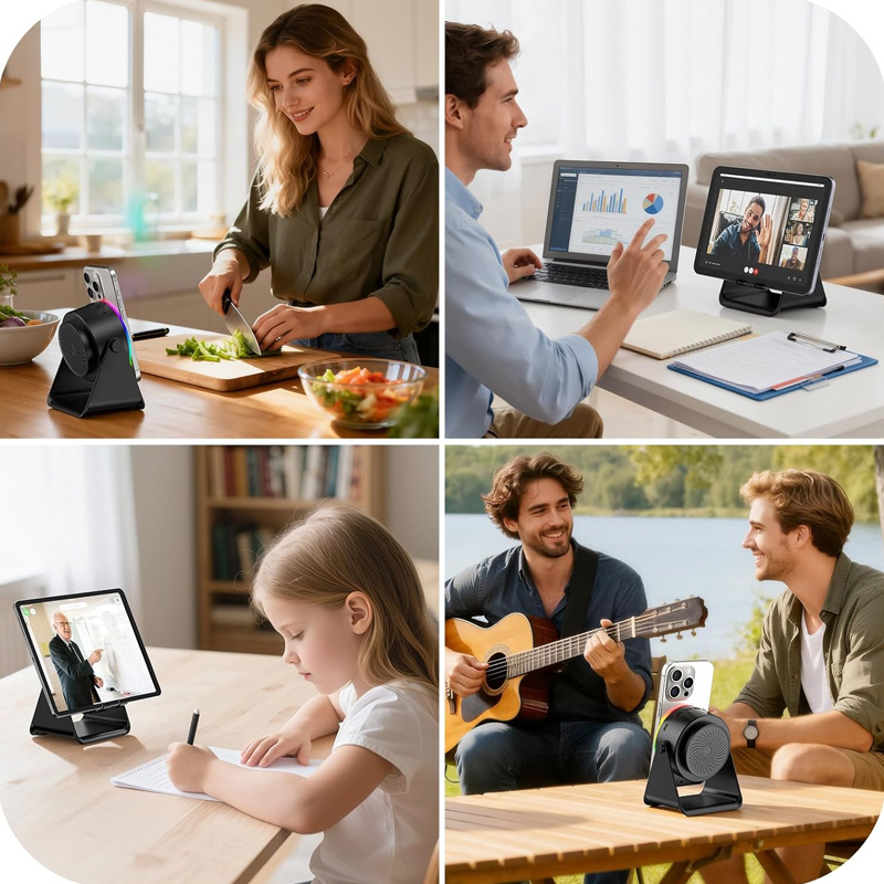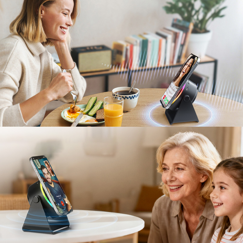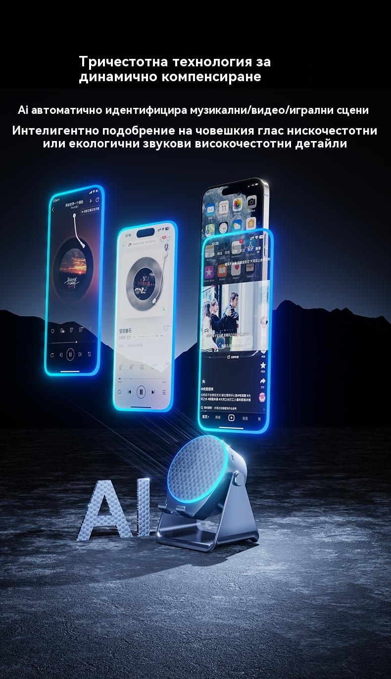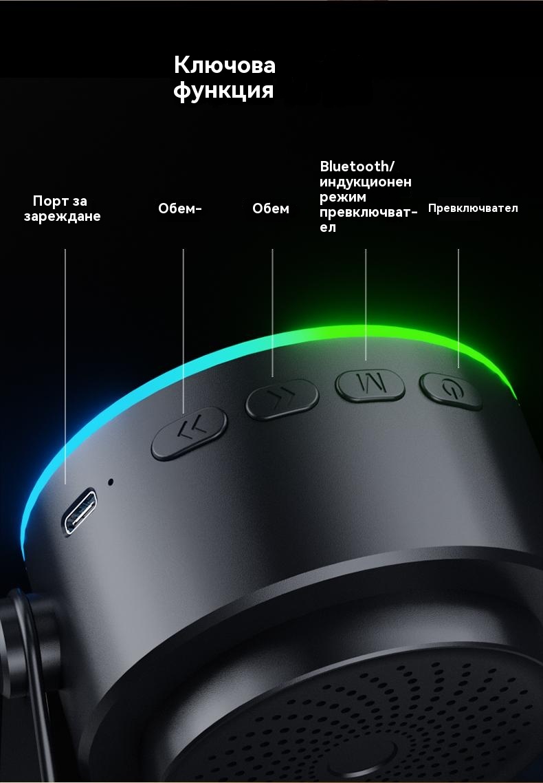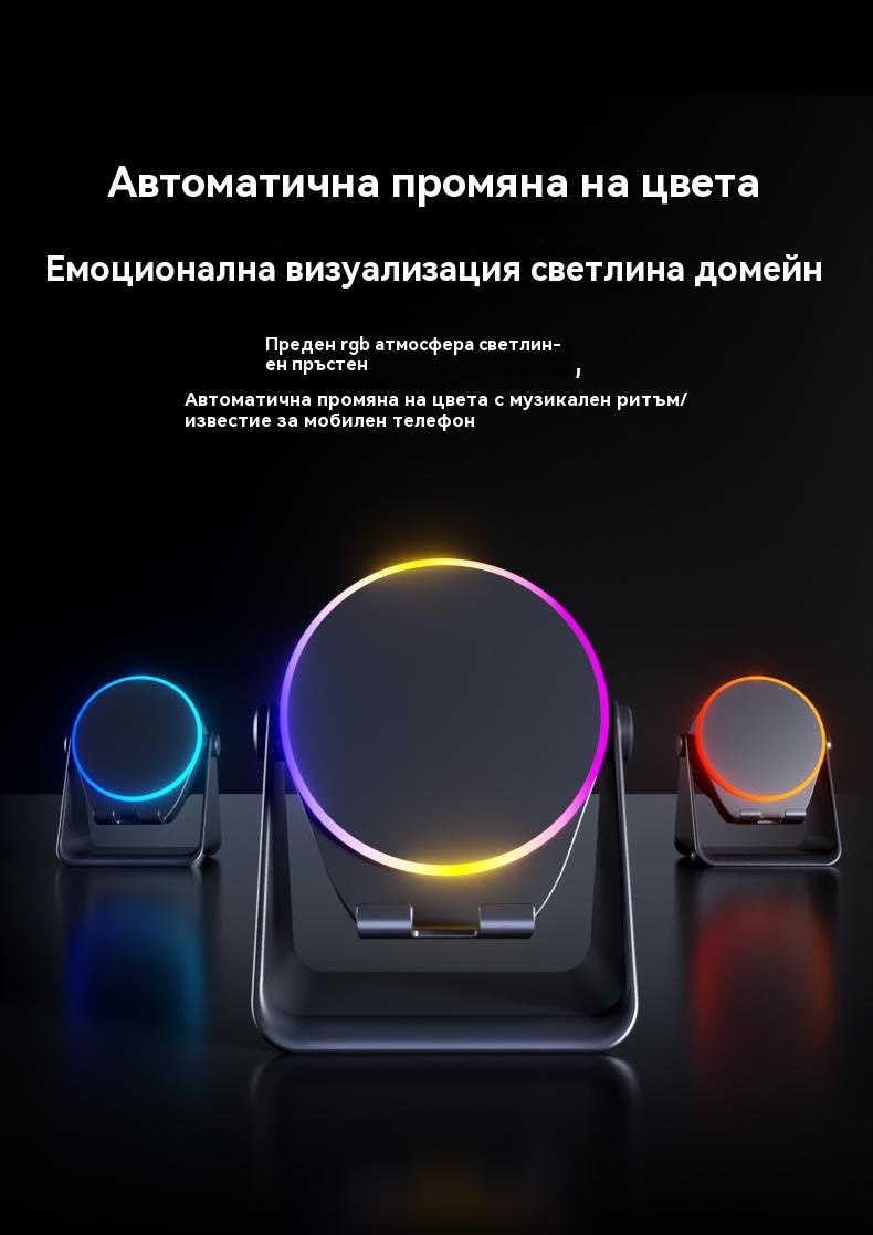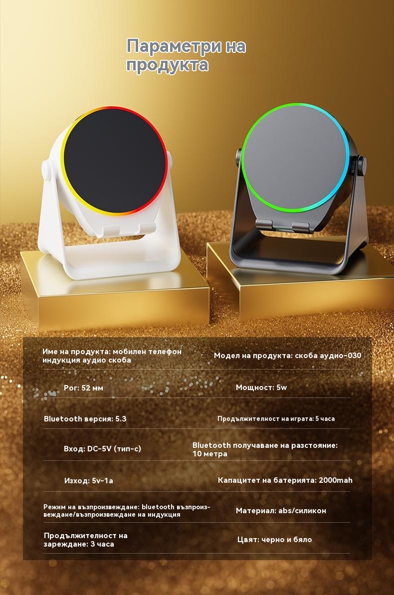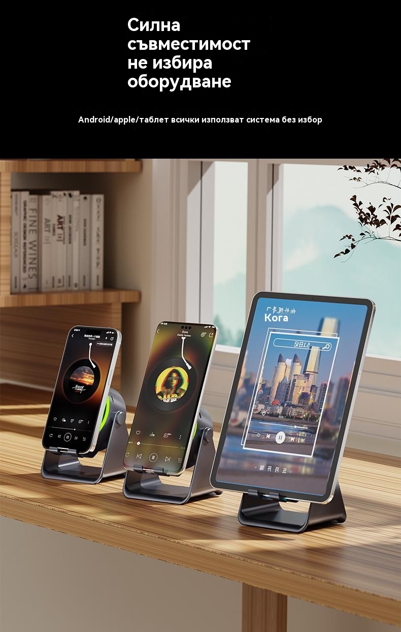 🔥📢 50% отстъпка! Bluetooth високоговорител 5 в 1 с безжично зареждане и регулируема стойка за телефон 🎶⚡
