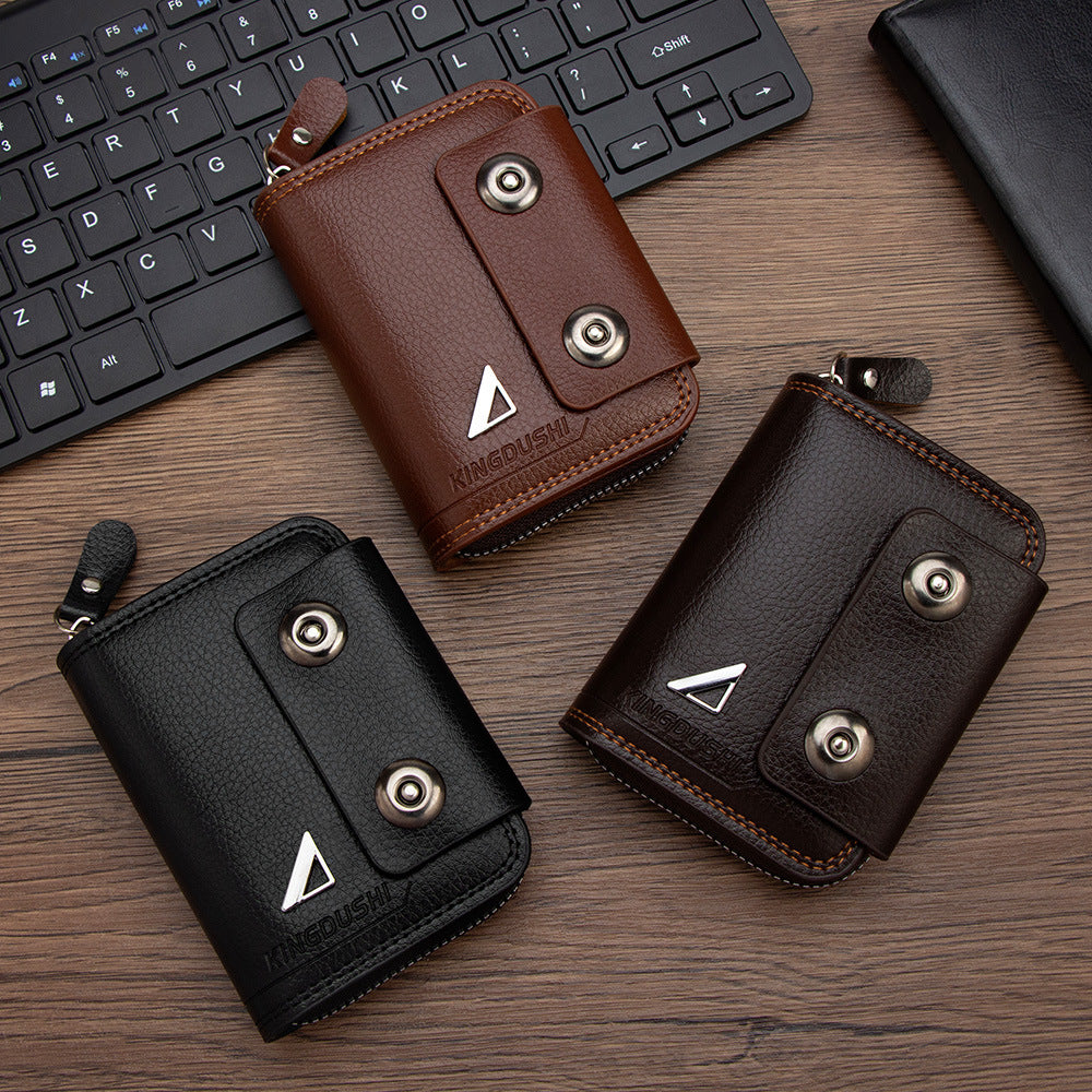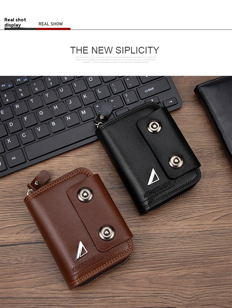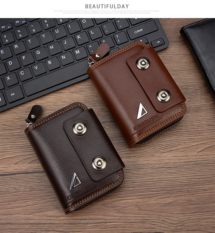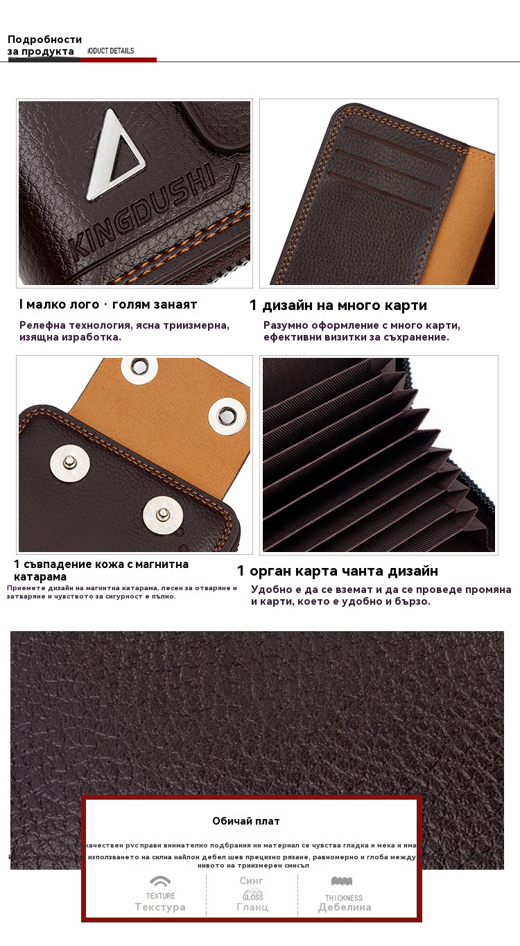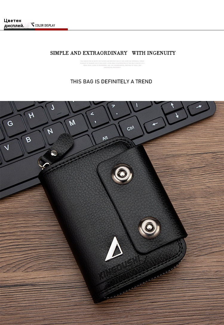 🔥【Гореща продажба】Нов мъжки къс портфейл, дизайн с двойна катарама, голям капацитет, множество отделения за карти.