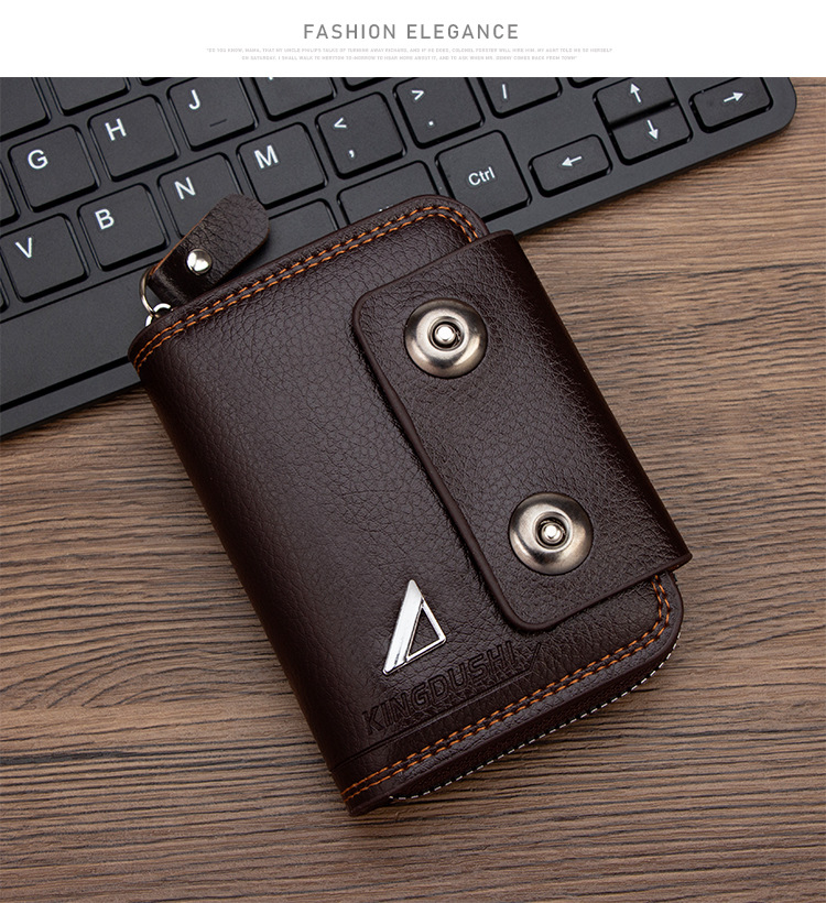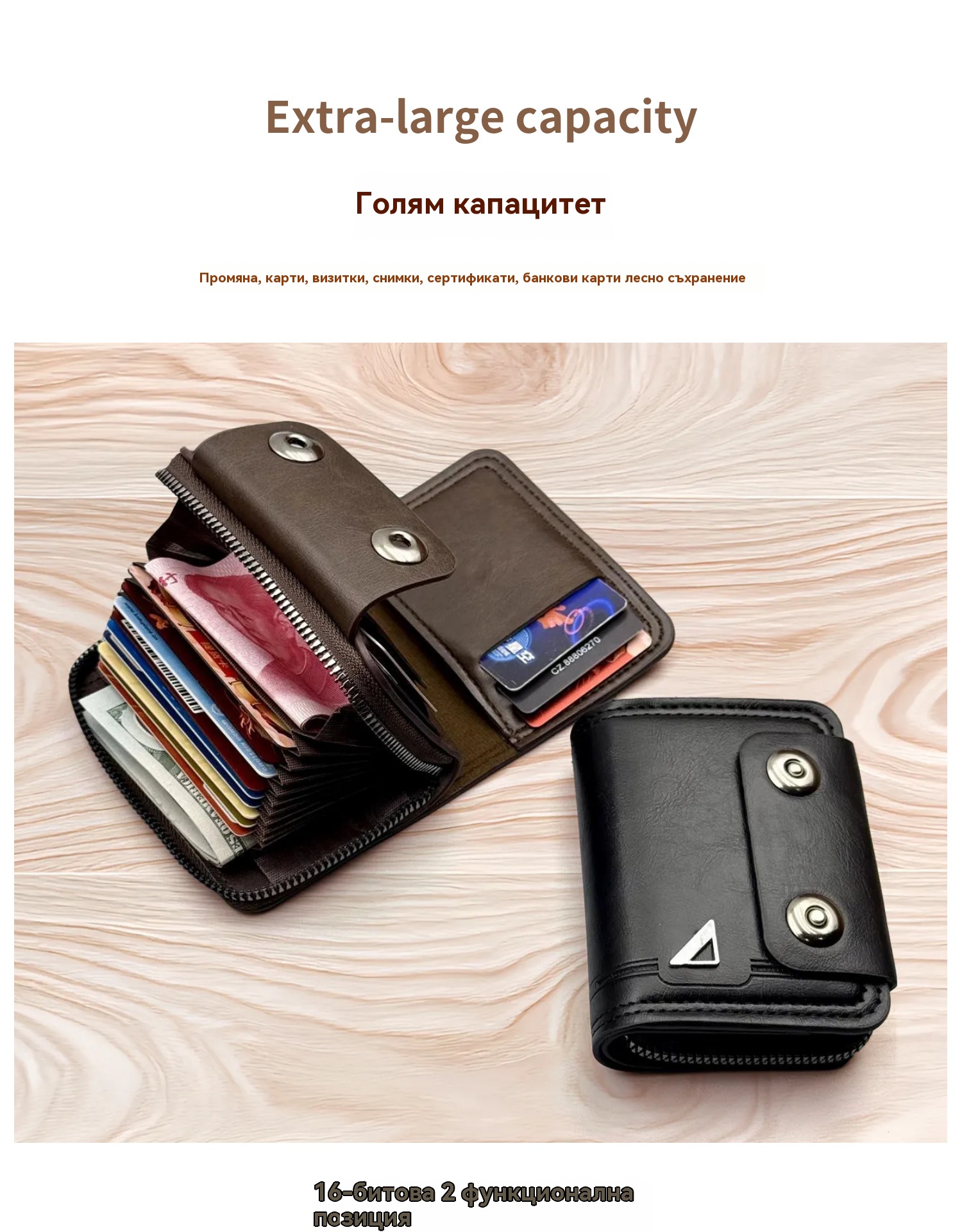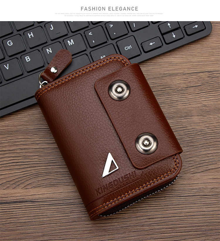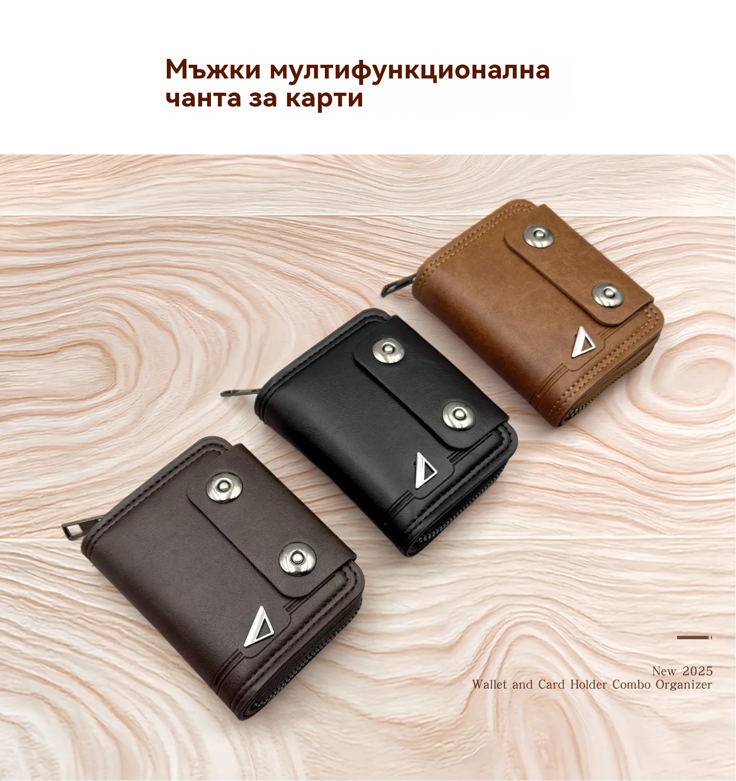 🔥【Гореща продажба】Нов мъжки къс портфейл, дизайн с двойна катарама, голям капацитет, множество отделения за карти.