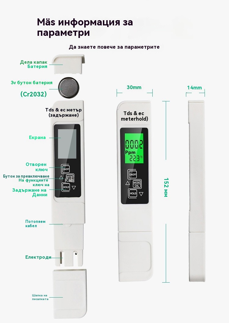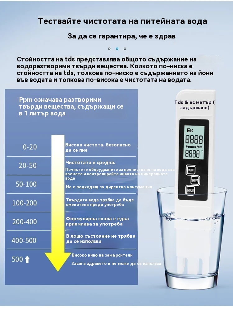 🔥【💥50% отстъпка】👨‍⚕️💧Цифров анализатор на качеството на водата с TDS метър