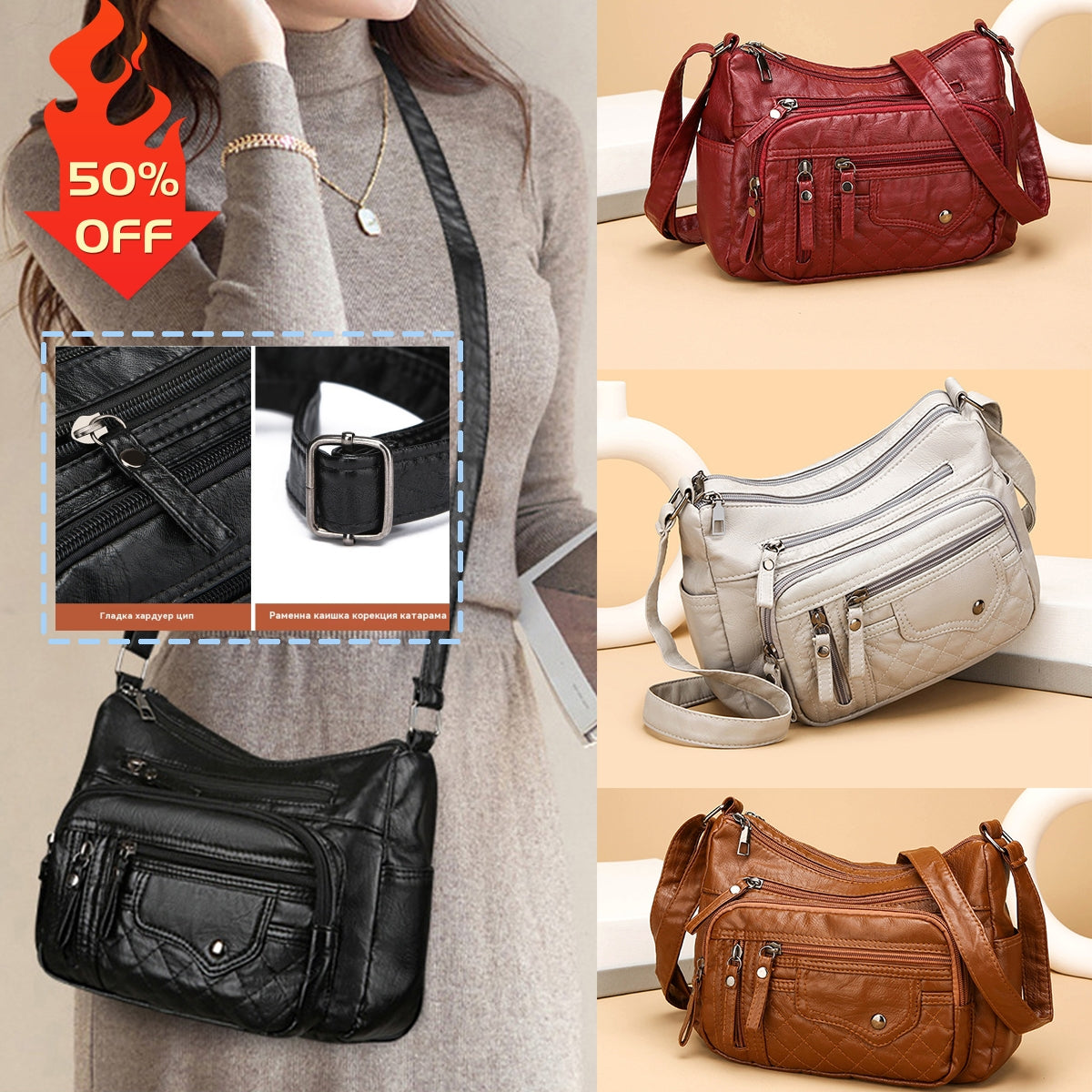 🔥【30% отстъпка】2026 Нова чанта през рамо/кръстосана чанта с голям капацитет от мека кожа за