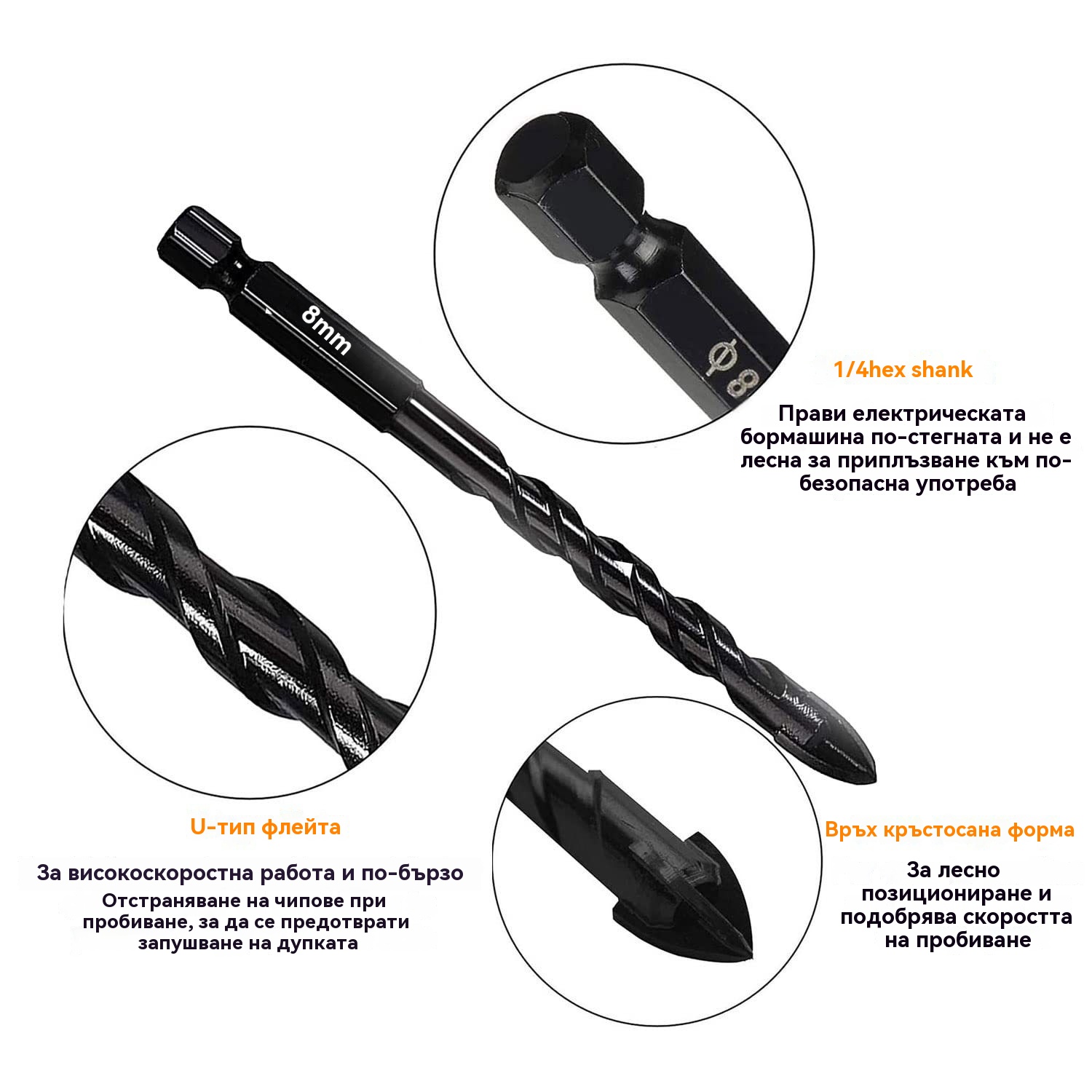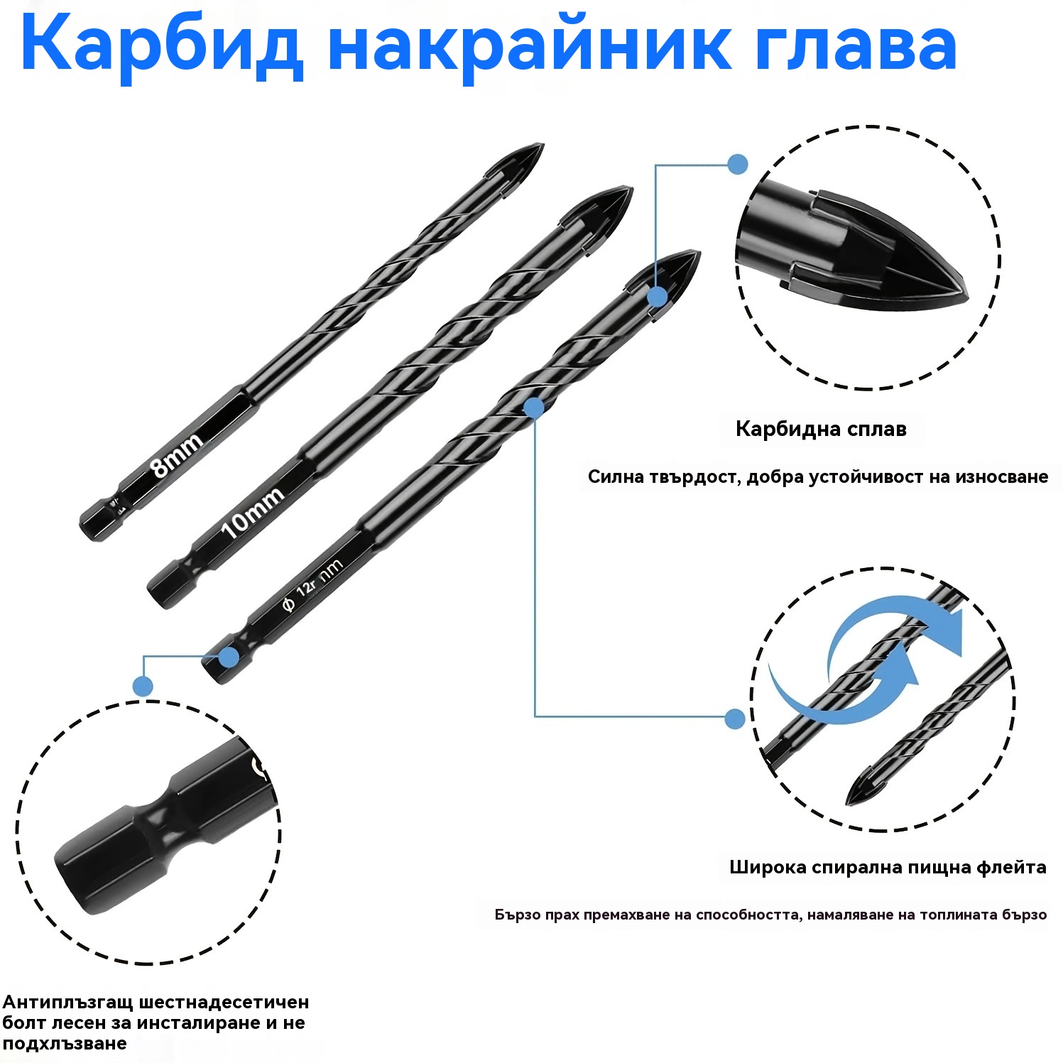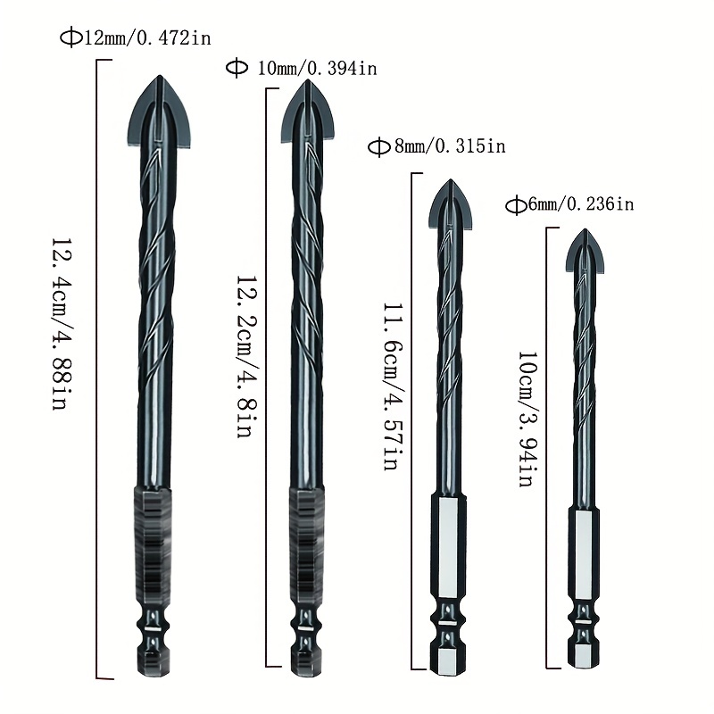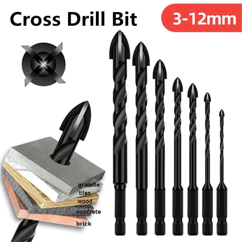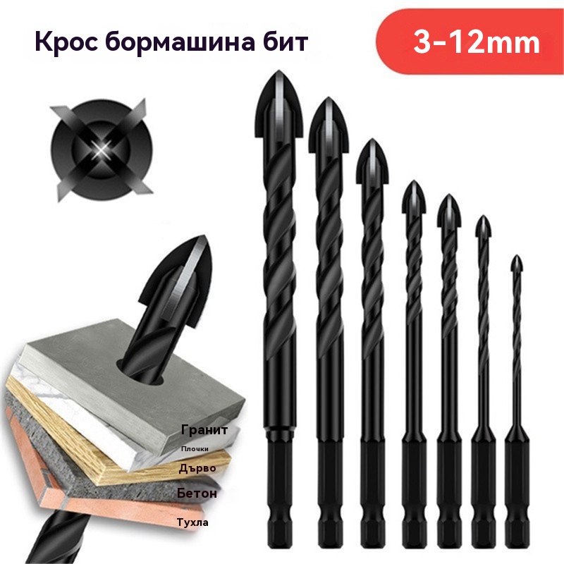 🔥【7 броя/3-12 мм】Четирифлейтово свредло от керамична сплав с неплъзгаща се шестоъгълна опашка ✅Пробиване на емайлирани плочи ✅Плочи ✅Стъклена сплав