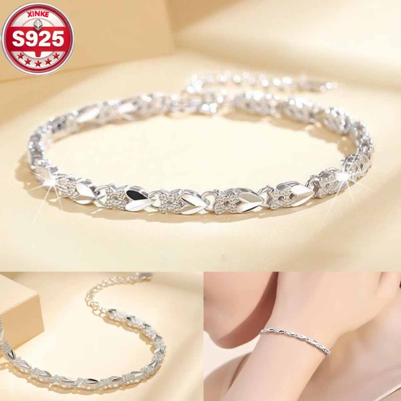 😀👉【Горещи продажби】💖🍀Нова модна гривна от сребро 925 с четирилистна детелина за жени.
