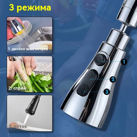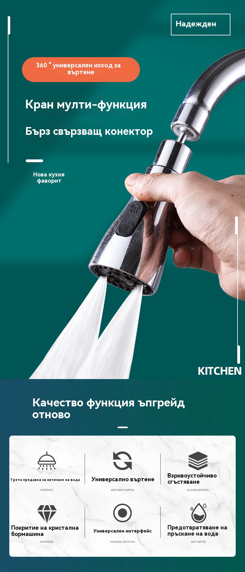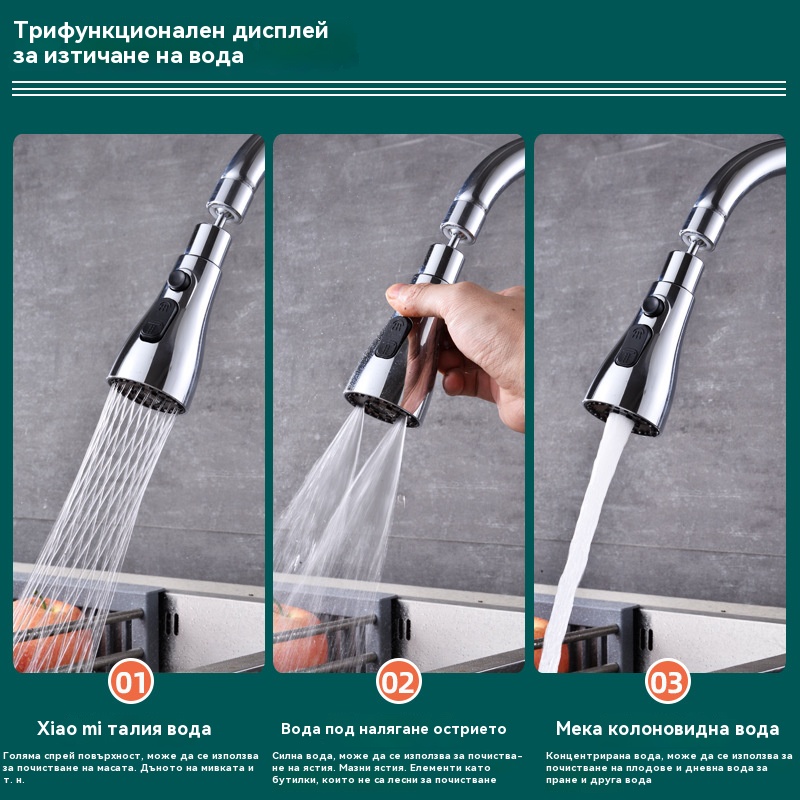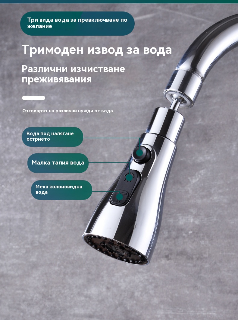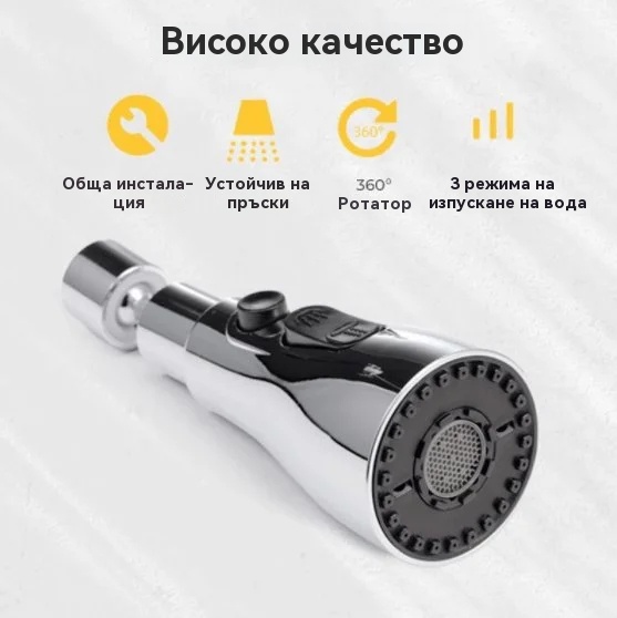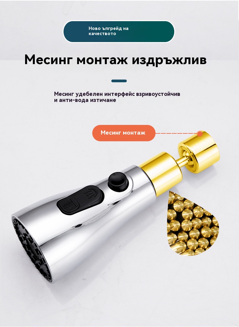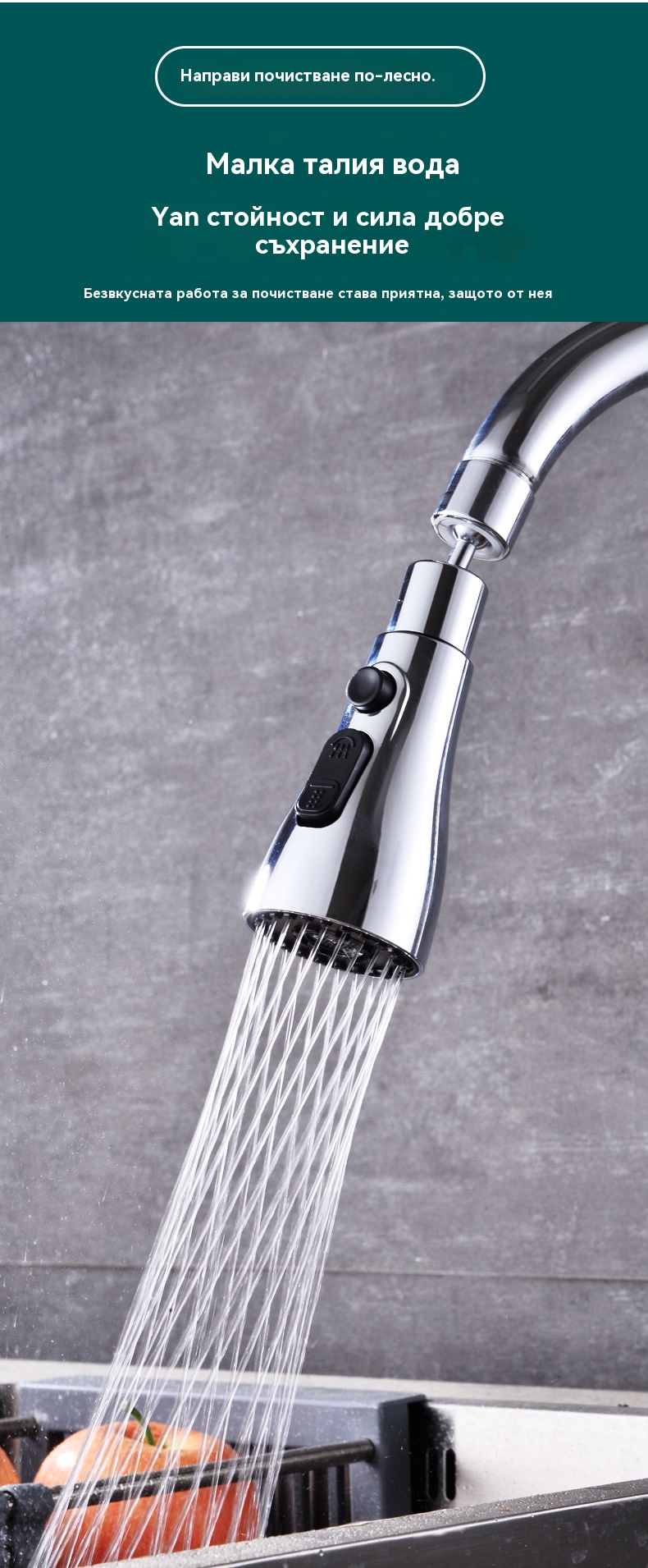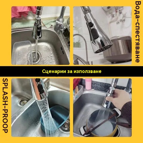 🚿💧Душ с удължител за универсални смесители; душ с многофункционална душ глава против пръски; душ глава, която може да се завърта и издърпва.